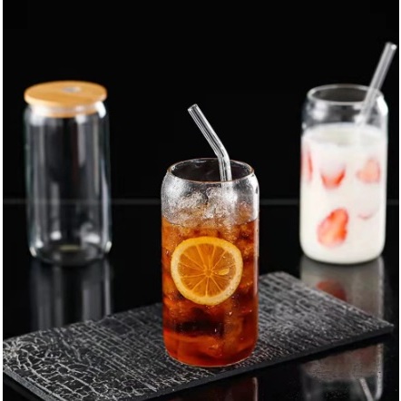 Copo De Vidro Com Tampa De Bambu 20x15,5x8,5 De 500 ML Para Cozinha Prático E Fácil Multiuso