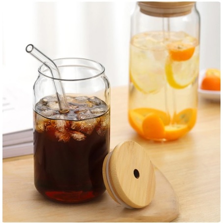 Copo De Vidro Com Tampa De Bambu 20x15,5x8,5 De 500 ML Multiuso Para Cozinha Prático E Fácil