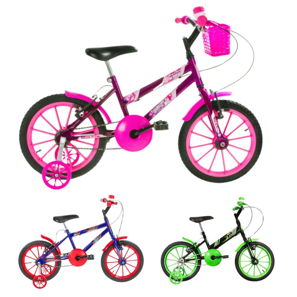 Bike bicicleta infantil kids menino Menina aro 16 rodas de apoio v brake Lilás/Rosa Azul/Vermelho