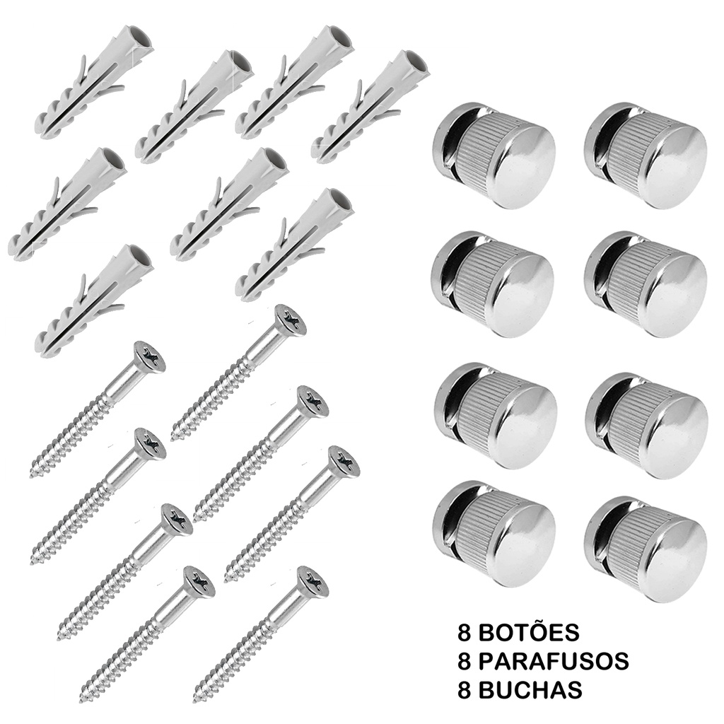 Suporte para Espelho com Parafuso Kit Botão Francês de Fixar Espelho em Parede Cromado