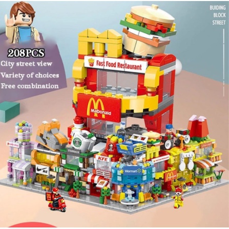 208 Peças Cidade Lojas Mc Donalds/Coca Cola/Fanta/Pepsi/Starbucks/ KFC Bloco De Montar Construção Compatível Com Lego City Street View Modelo De Edifício Bloco Educacional Brinquedos