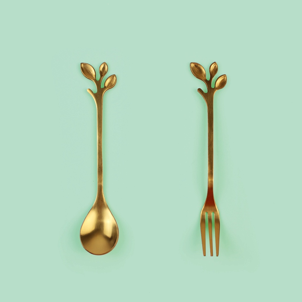 Garfo De Sobremesa Ou Colher De Café Aço Inox Dourada Galhos Folhinhas - Allmini