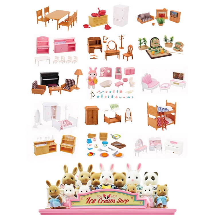 Merchandise Spot 2023 Sylvanian Families New Family Forest Warm Living Room Bath Montessori 1/12 Conjunto De Utensílios De Cozinha De Renas Modelo Boneca Animal