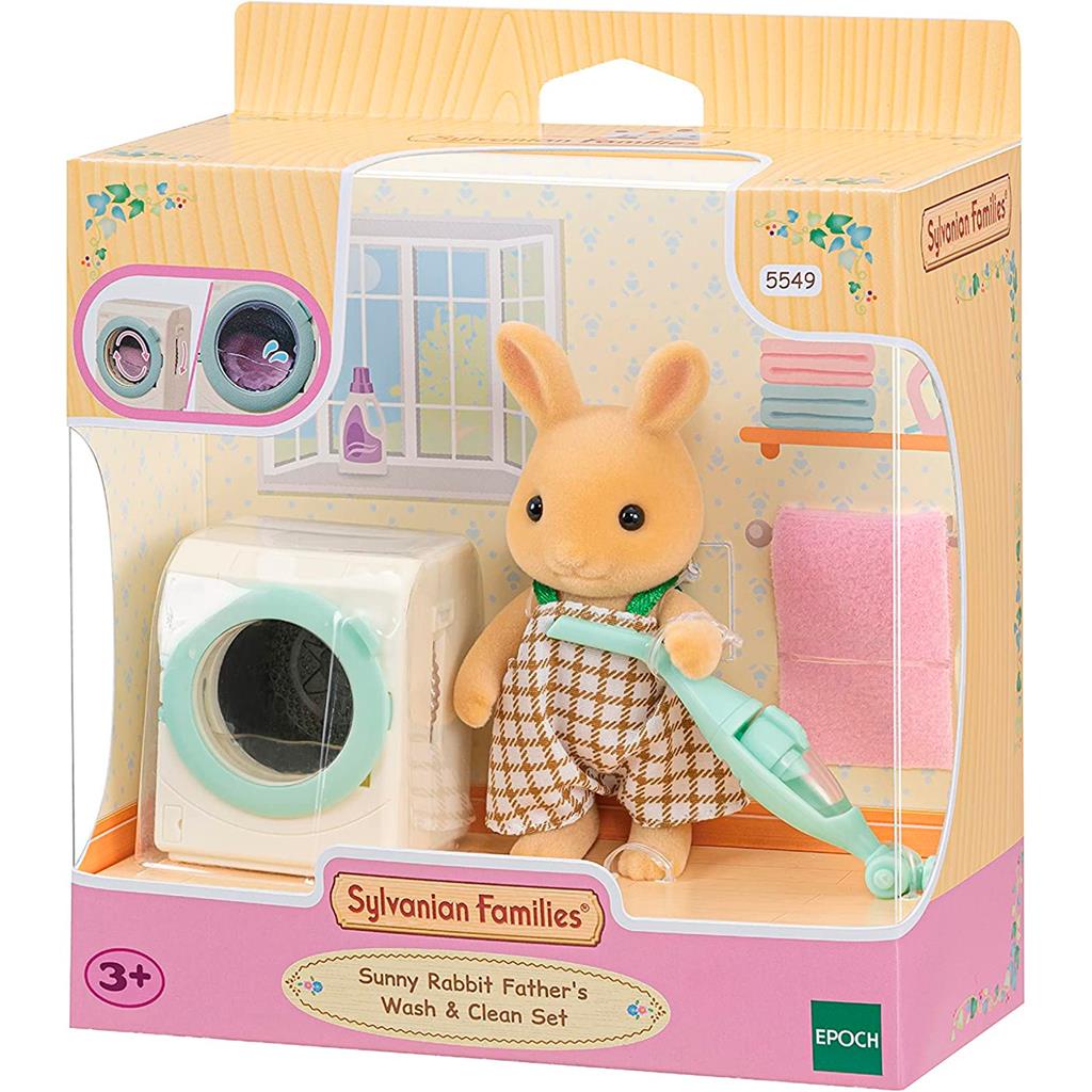 Sylvanian Families Conjunto Limpeza Papai Coelho Com Acessorios Maquina De Lavar Aspirador De Po Miniatura Fofinho Boneco Divertido - Epoch