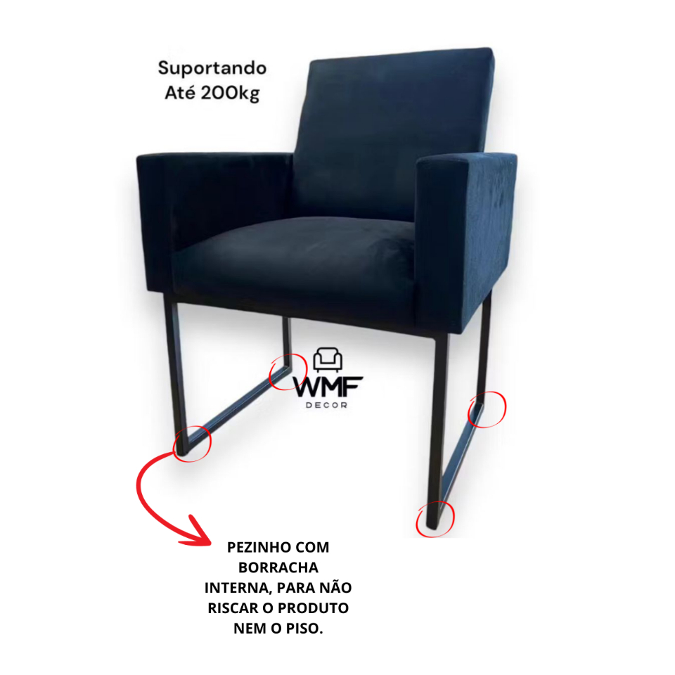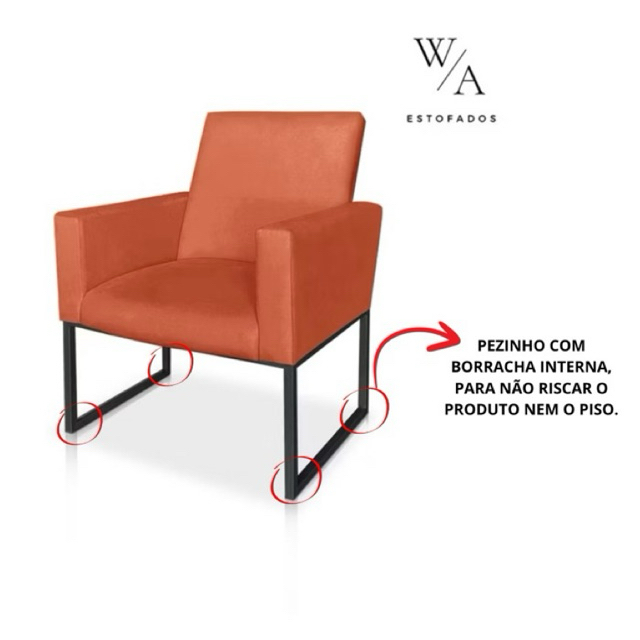 Poltrona Cadeira Decorativa Recepção Base de Ferro Preto