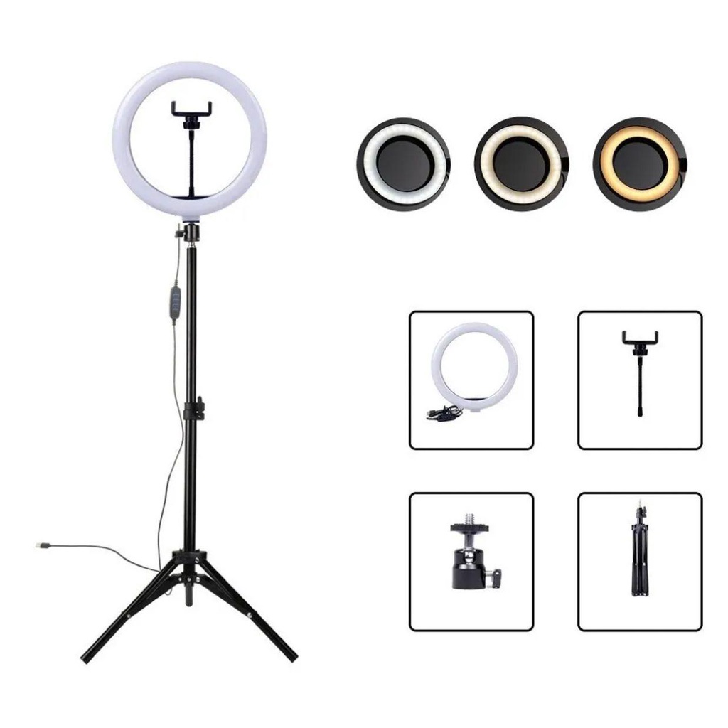 Kit Ring Light Profissional 10 e 6 Polegadas Iluminador Portátil Com Tripé 3 Cores Original Envio Imediato