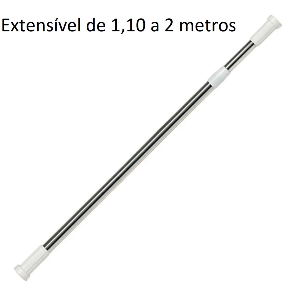 Porta Cortina Box Cromado Varão Bastão Banheiro de 1,10 m até 2,00 metros Extensível Universal Ajustável pia guarda roupas