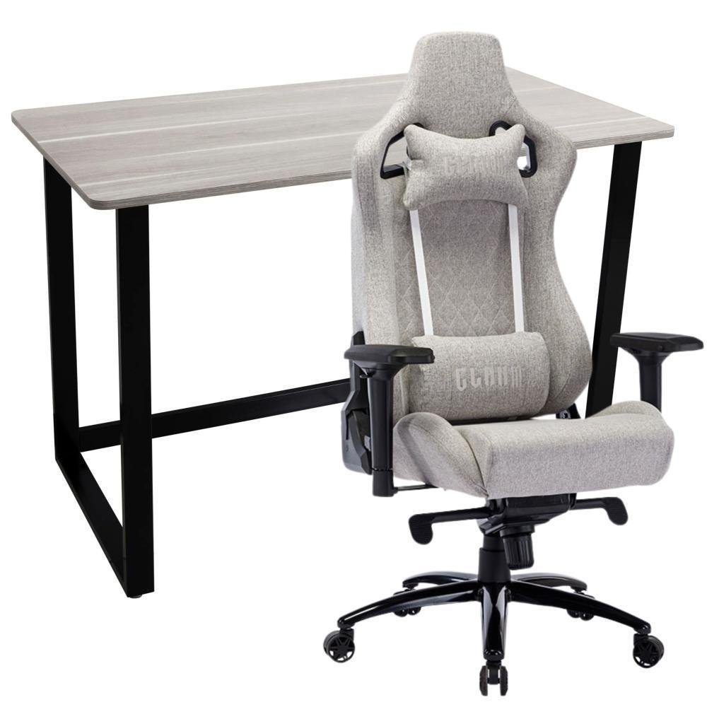 Kit Cadeira Gamer Confortável Até 180kg Com Almofada De Lombar E Pescoço Cor Cinza + Mesa Suporte Escrivaninha Grande Tela Gabinete