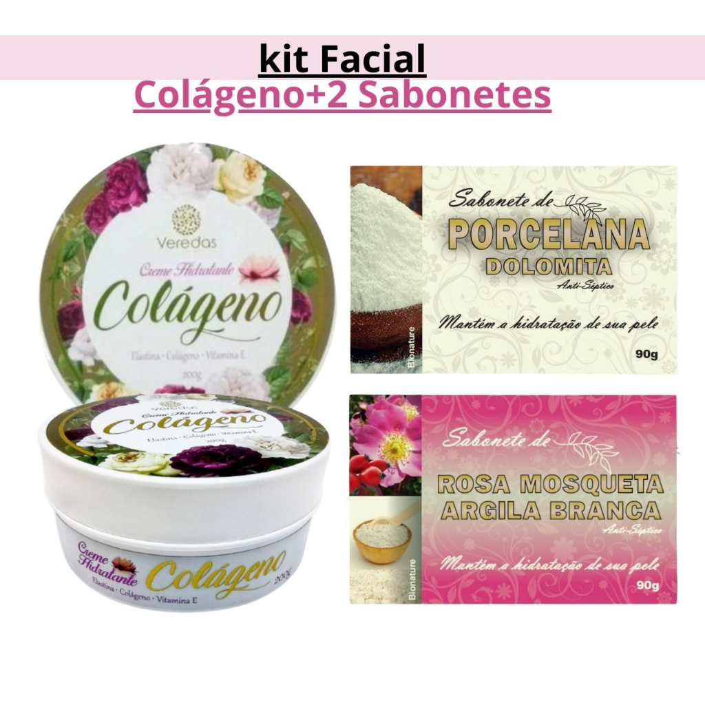 Kit Facial 3 itens /Creme Hidratante Colágeno+ 2 sabonetes