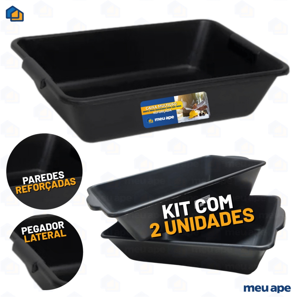 2 Caixa Plástica Para Massa Retangular Obras Areia Gato Multiuso Reforçada 20LT