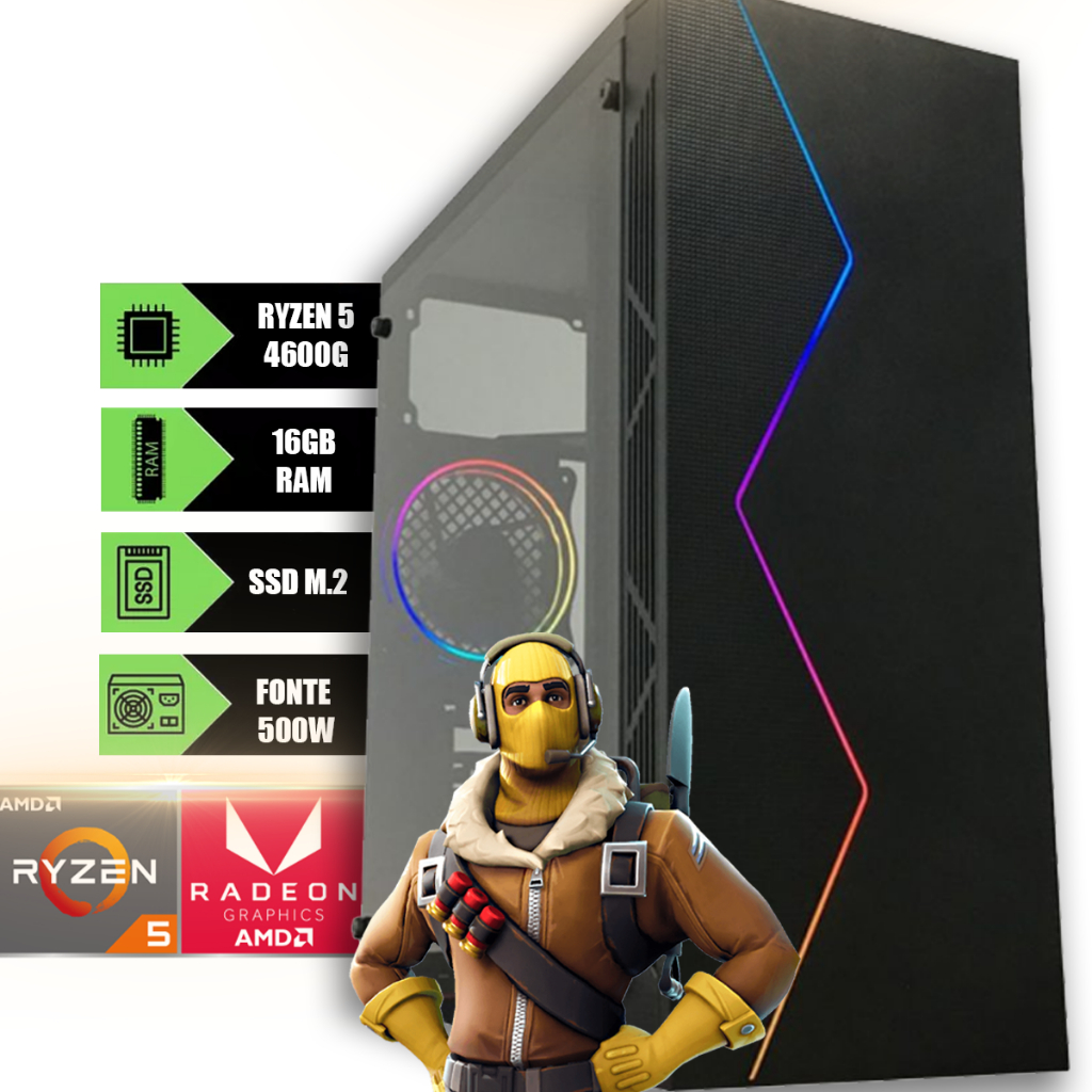 Computador PC Gamer AMD Ryzen 5 4600G 16GB RAM 3200MHZ HD SSD M.2 500W