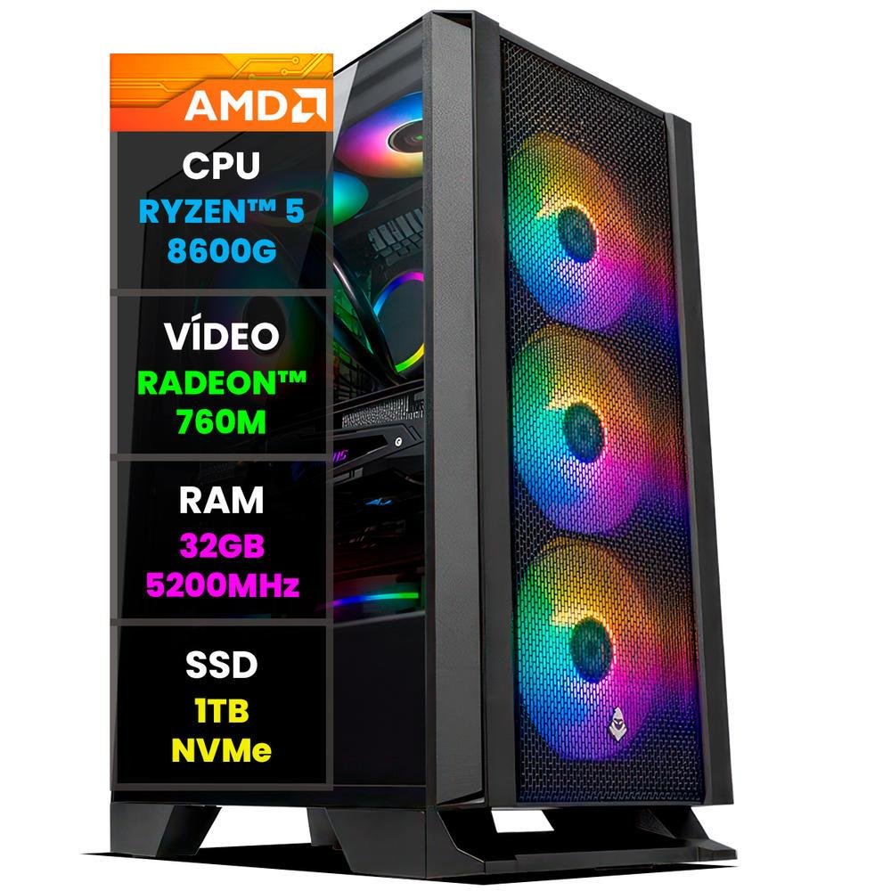 PC Gamer Computador Completo Nolag® Amd Ryzen 5 8600g , Radeon™ Graphics 760m , 32gb Ram , SSD 1TB Nvme , Gabinete RGB