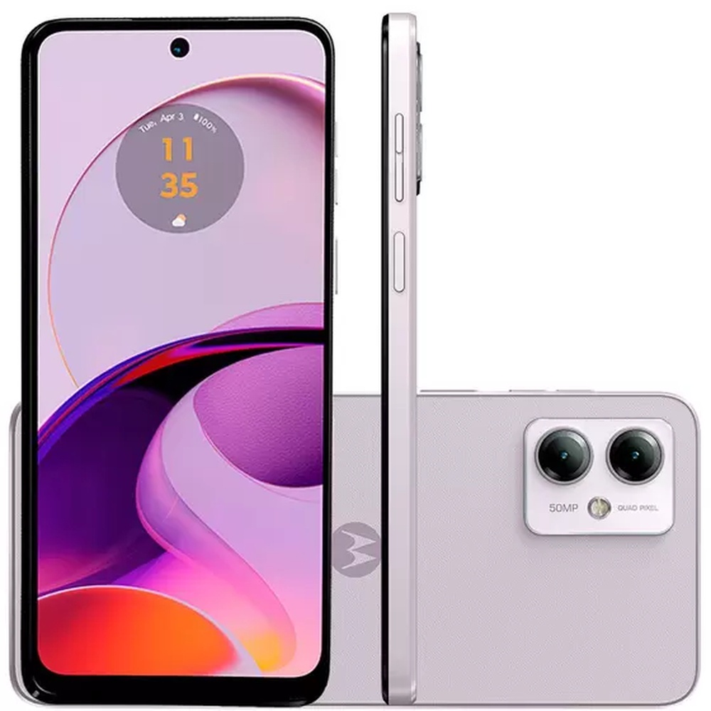 Smartphone Motorola Moto G14 Lilac - Vegan Leather 128GB + 4 GB RAM Tela 6,5" IPS Camera 50MP + 2MP Selfie 8MP Bateria 5000mAh