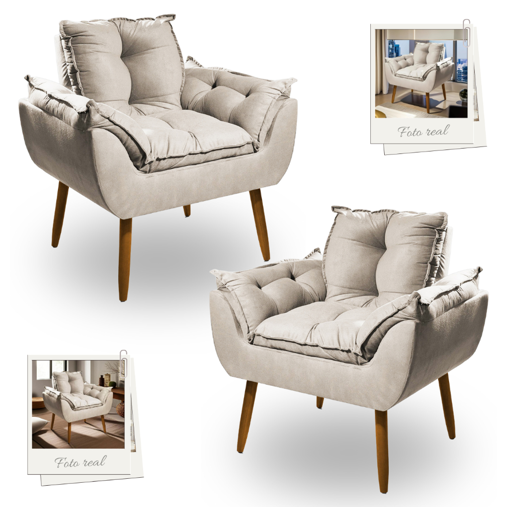 Kit 2 Poltrona Opala Premium para Sala e Quarto Suede Bege- Jylcrom