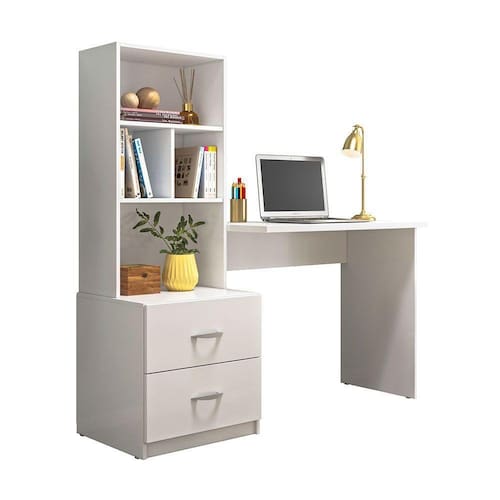 Escrivaninha para Quarto Cristal 2 Gavetas e 3 Nichos Cor Branco - Peternella Móveis