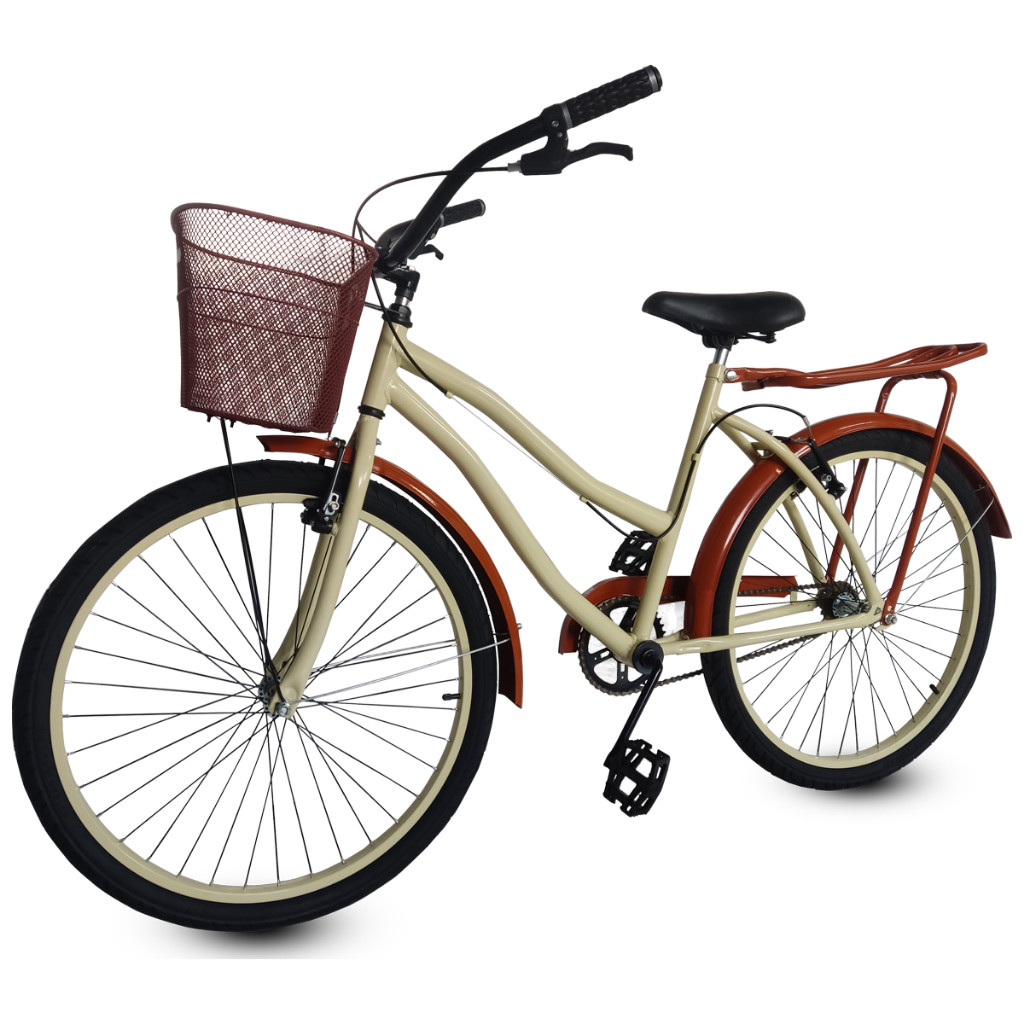 BICICLETA ARO 26 RETRO BEACH BIKE FEMININA VINTAGE BEGE MAROM