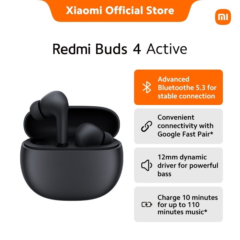 Fone de Ouvido Bluetooth Xiaomi Redmi Buds 4 Active - Preto