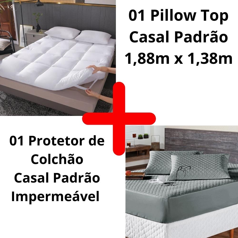 Kit Pillow Top Casal Percal Macio Cama Box + 01 Protetor de Colchão Impermeável Casal Ergonomico