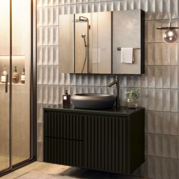 Conjunto para Banheiro Ripado 80 Preto C/ Espelheira e Cuba
