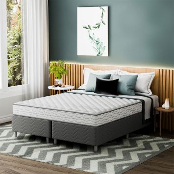 Cama Box com Colchão Queen Howie Espuma D45 (17x158x198) Branco e Cinza