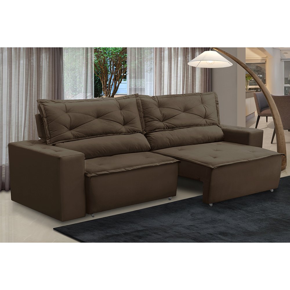 Sofá Retrátil e Reclinável 3 lugares com Molas 1,50m Laura Suede Marrom Madelina