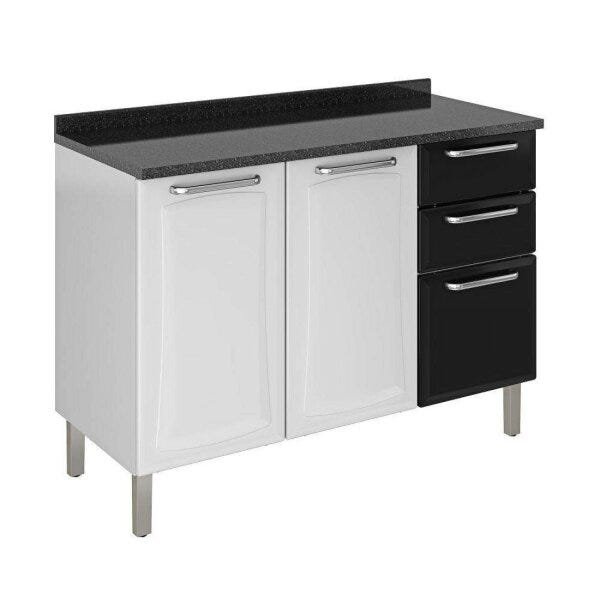 Balcão de Cozinha Itatiaia New Premium Aço Para Pia 3 Portas e 2 Gavetas Sem Tampo Branco Neve