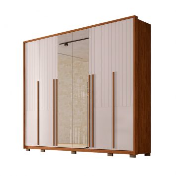 Guarda Roupa Casal Atrice 6 Portas com 2 Portas Ripado com 2 Portas em Espelho