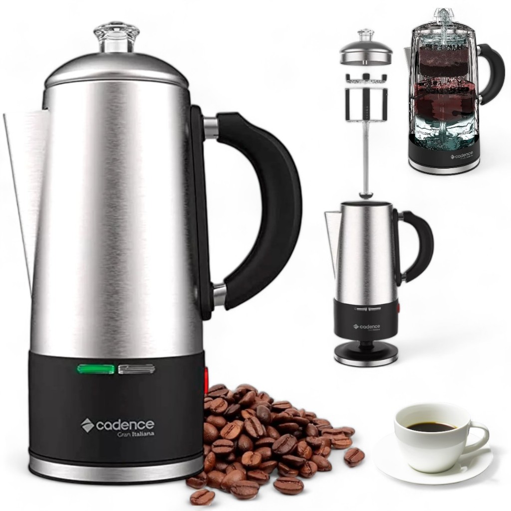 Cafeteira Italiana Elétrica Caf120 Cadence Inox 1,5L Inox Filtro 110v ou 220v Percolação Automatica