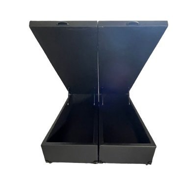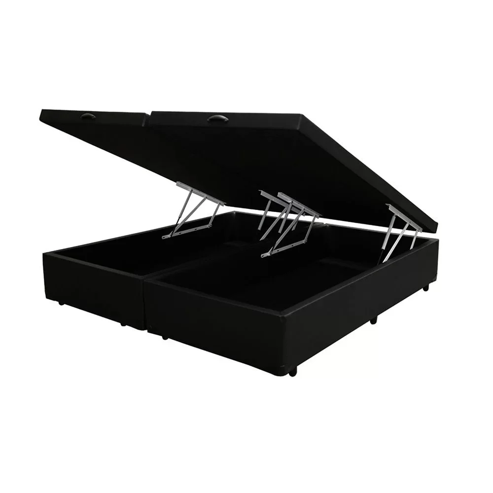 Cama Box Baú Casal Bipartido Blindado Sintético Preto com Pistão a Gás