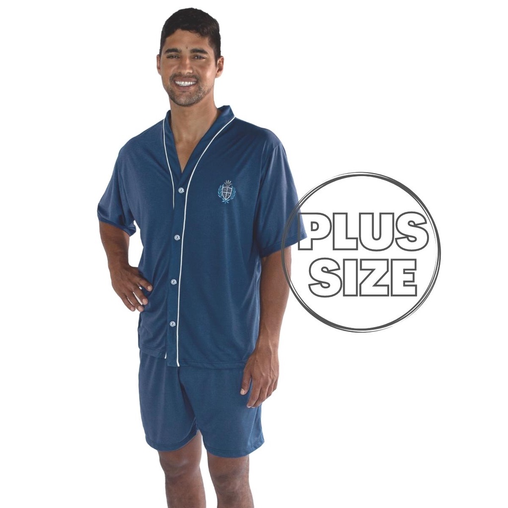 Pijama PLUS SIZE Masculino Adulto Malha Pv Manga Curta/ Short Verão