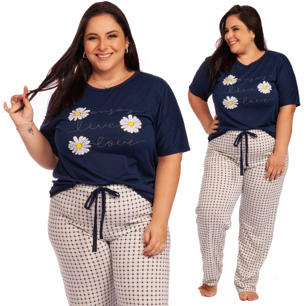 Pijama Feminino Plus Size Conjunto Calça e Manga Curta Tamanhos Extra G1 G2 G3 Oferta