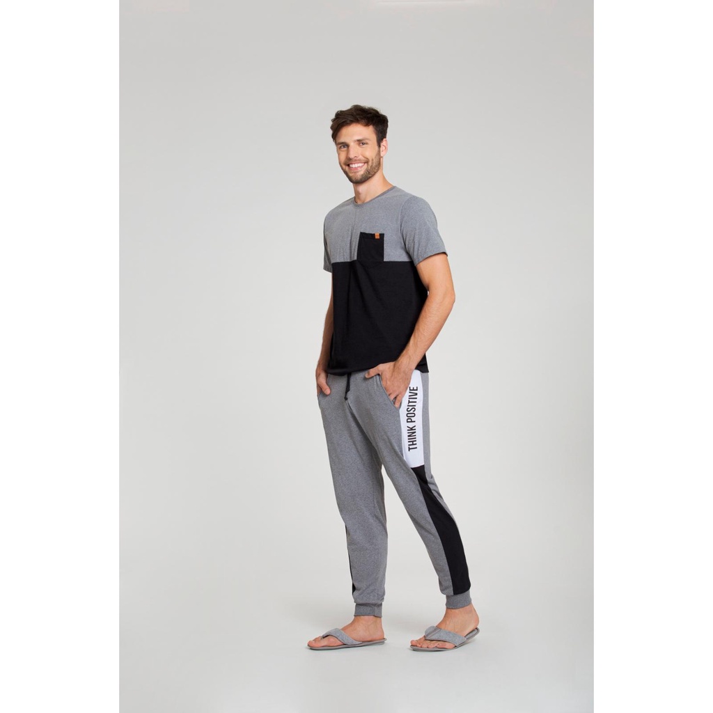 Pijama Manga Curta Calça Adulto Masculino Chumbo com Preto