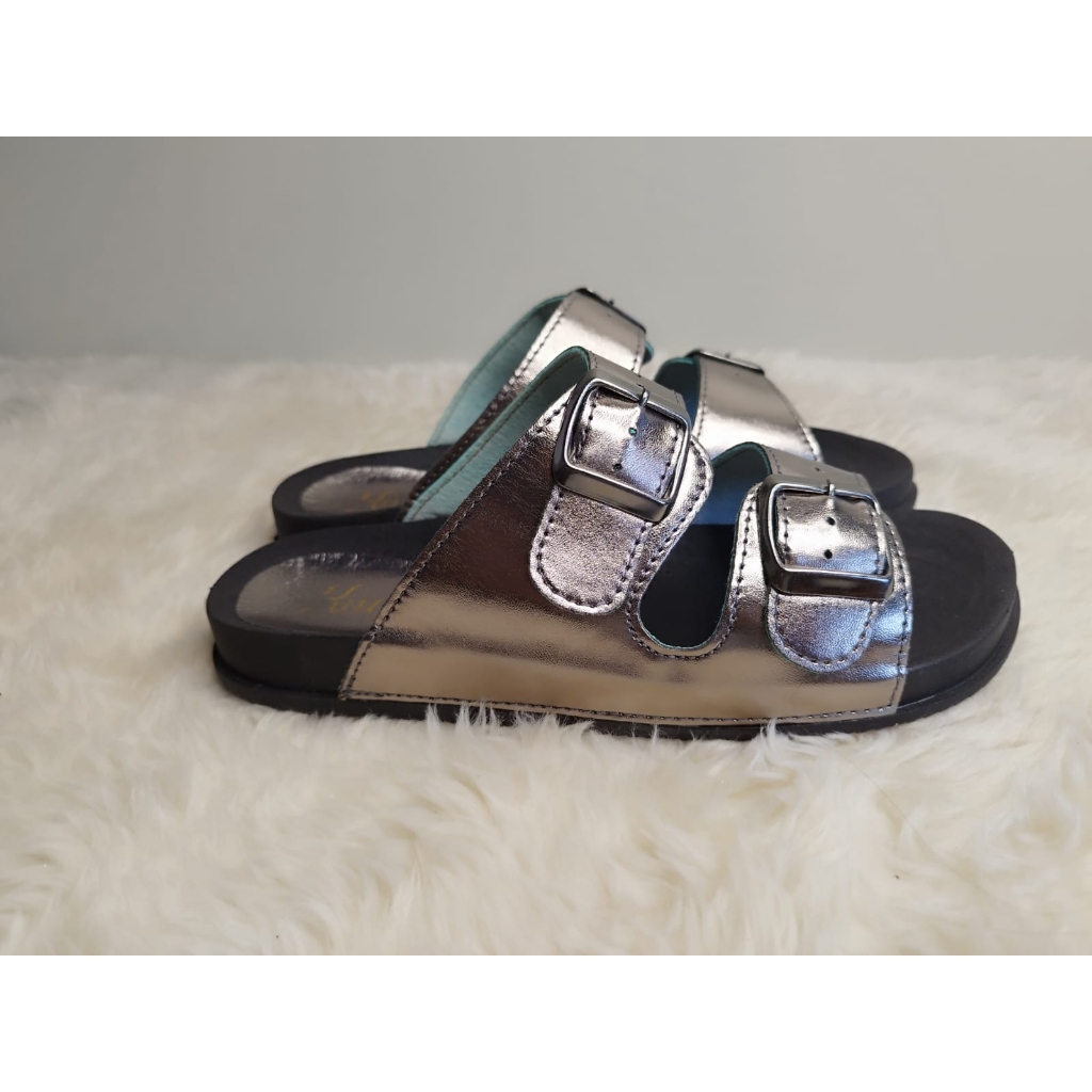 Sandalia Birken papete com brilho e metalizada com fivelas ajustaveis TN110 SL/PRETA