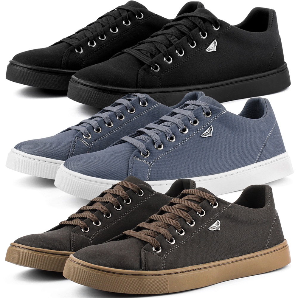 Kit 3 Pares Sapatênis Masculino Touroboots Preto, Marrom e Chumbo