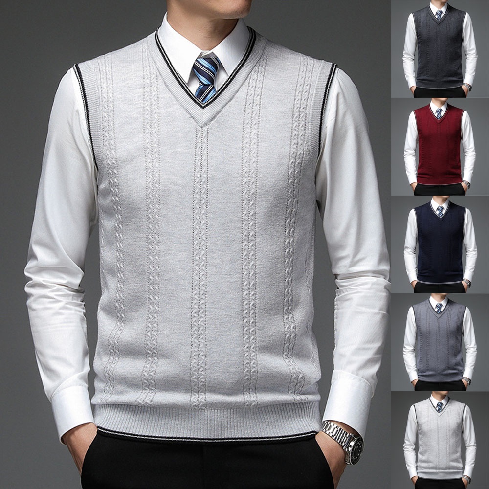 Colete Suéter Masculino De Tricot Lã Gola V Sem Manga Slim Fit Casual Pullover Social Alta Qualidade