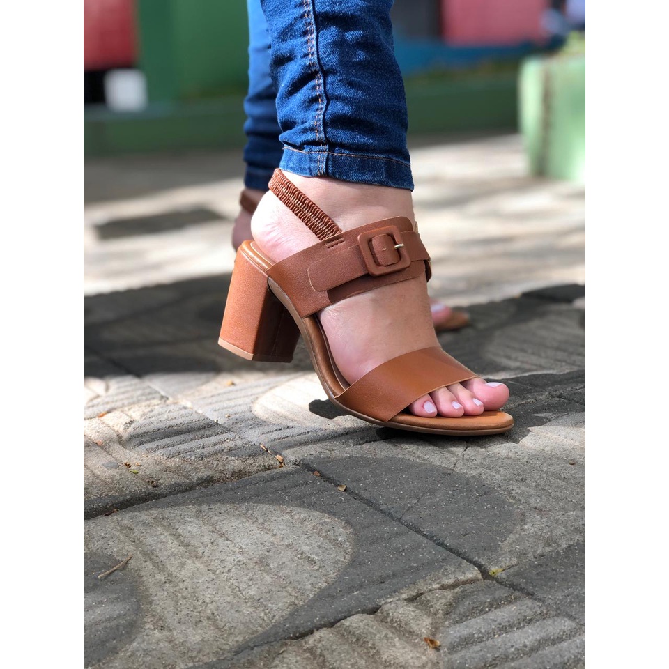Sandália Feminina Salto Bloco Médio Tiras Fivela Tendência Verão