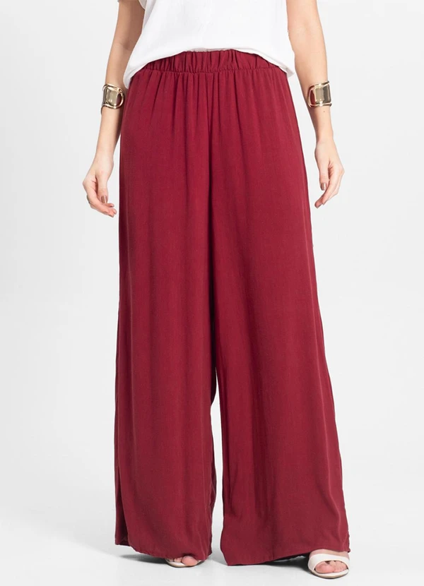 Select - Calça Feminina Pantalona Lisa Vermelho