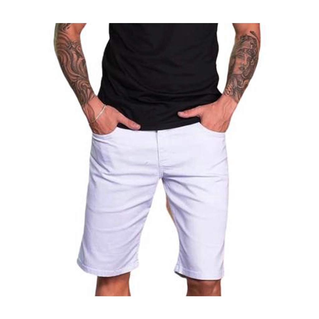BERMUDA BRANCA MASCULINA LISA COM LYCRA DE SARJA ANO NOVO