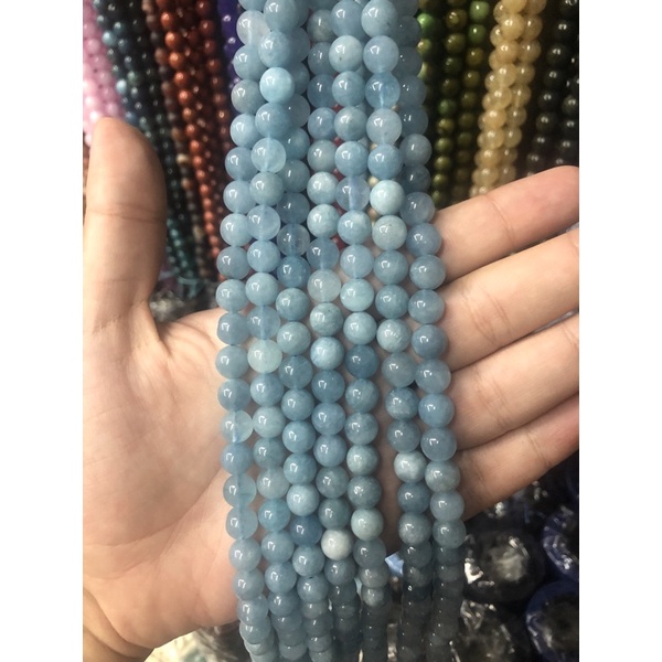 Fio de pedra natural aquamarine 8MM aprox 47 unidades