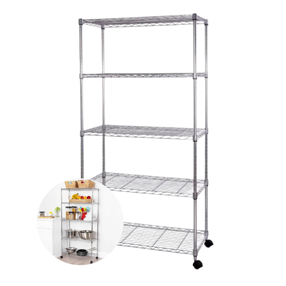 Estante Aramada Em Aço Cromado Com 5 Prateleiras Ajustáveis E Rodízios
