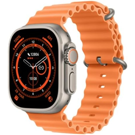 Smartwatch relógio inteligente unissex T800 ULTRA, pulseira oceano cor laranja, carregamento por indução
