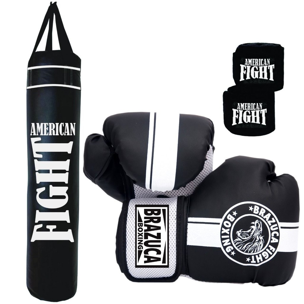 Kit Boxe Muay Thai Luva + Bandagem Brazuca + Saco de Pancada Preto