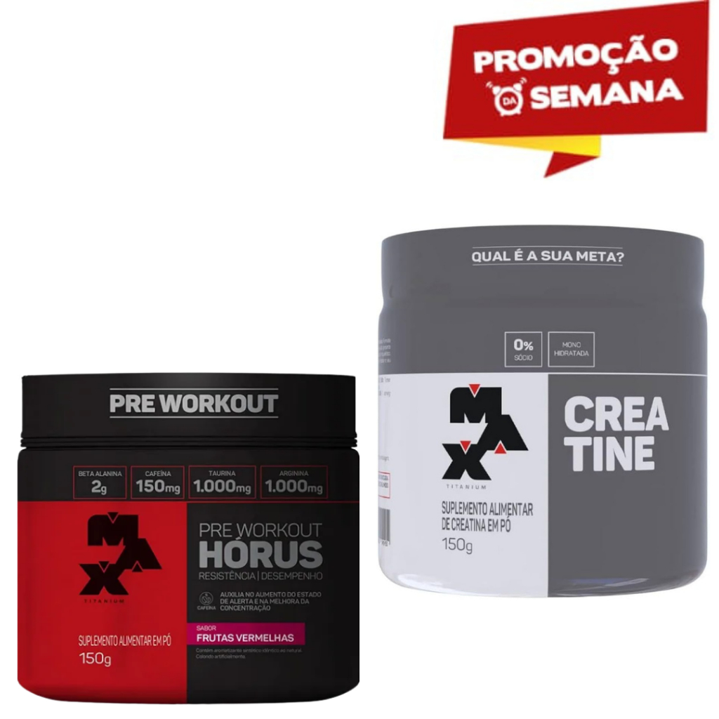 Kit Horus pré treino + Creatina Max Titanium 150g