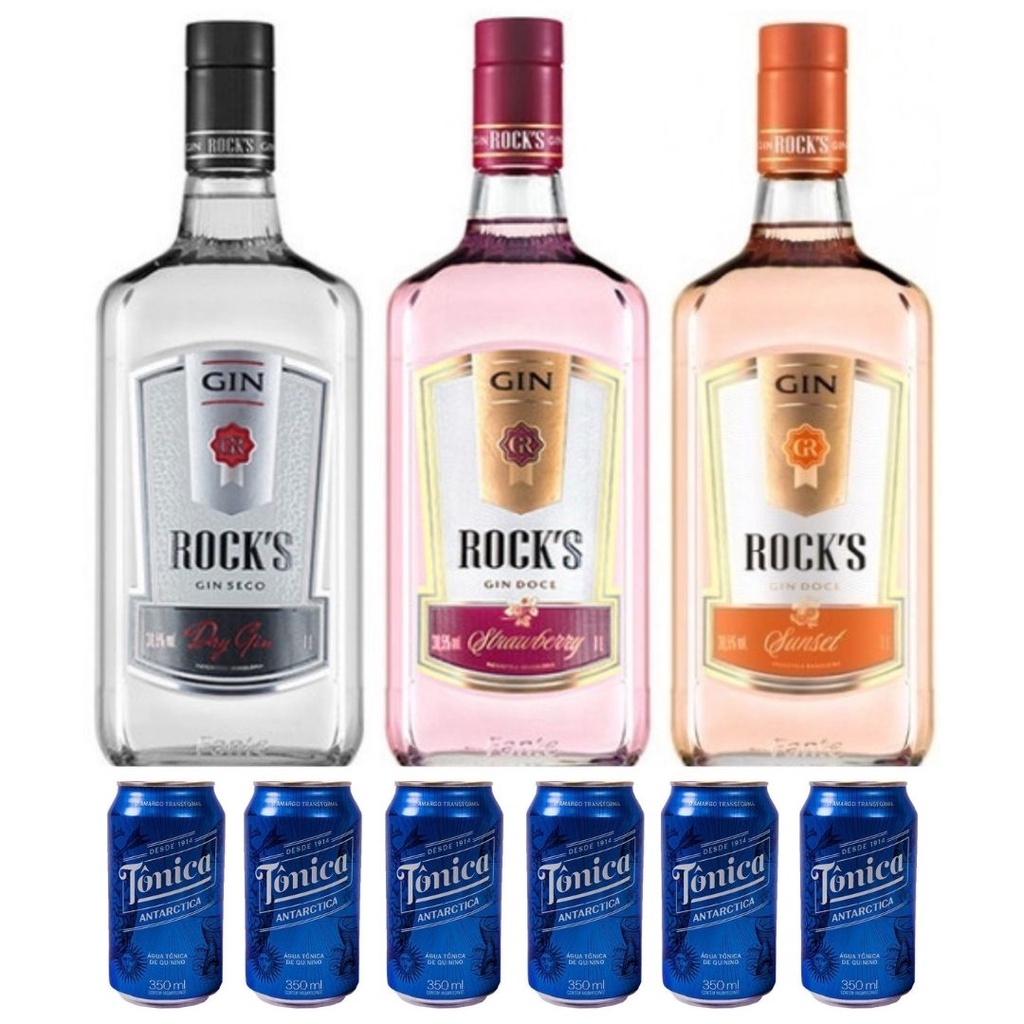 Kit Gin Rock's - Strawberry, Seco E Sunset - 1L + Tônica
