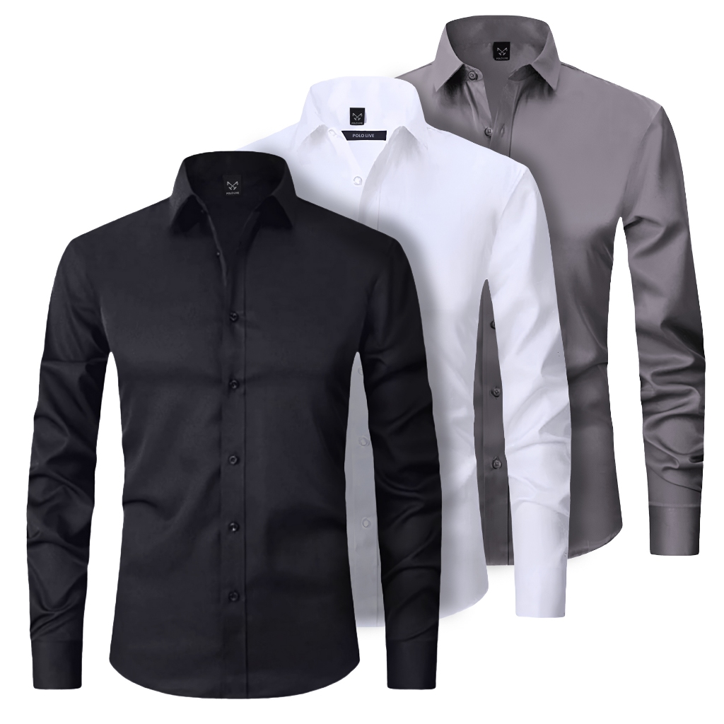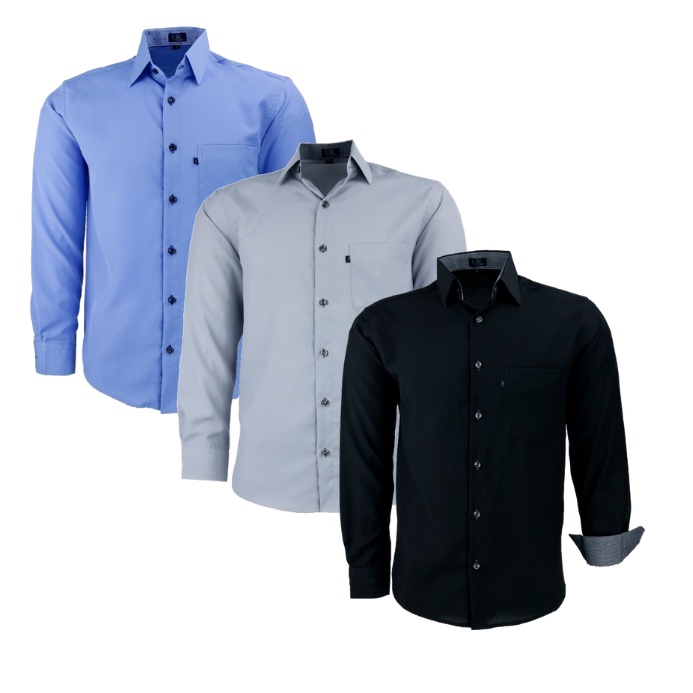 Kit com 3 Camisas Social Masculina Manga Longa Lisa Slim Luxo