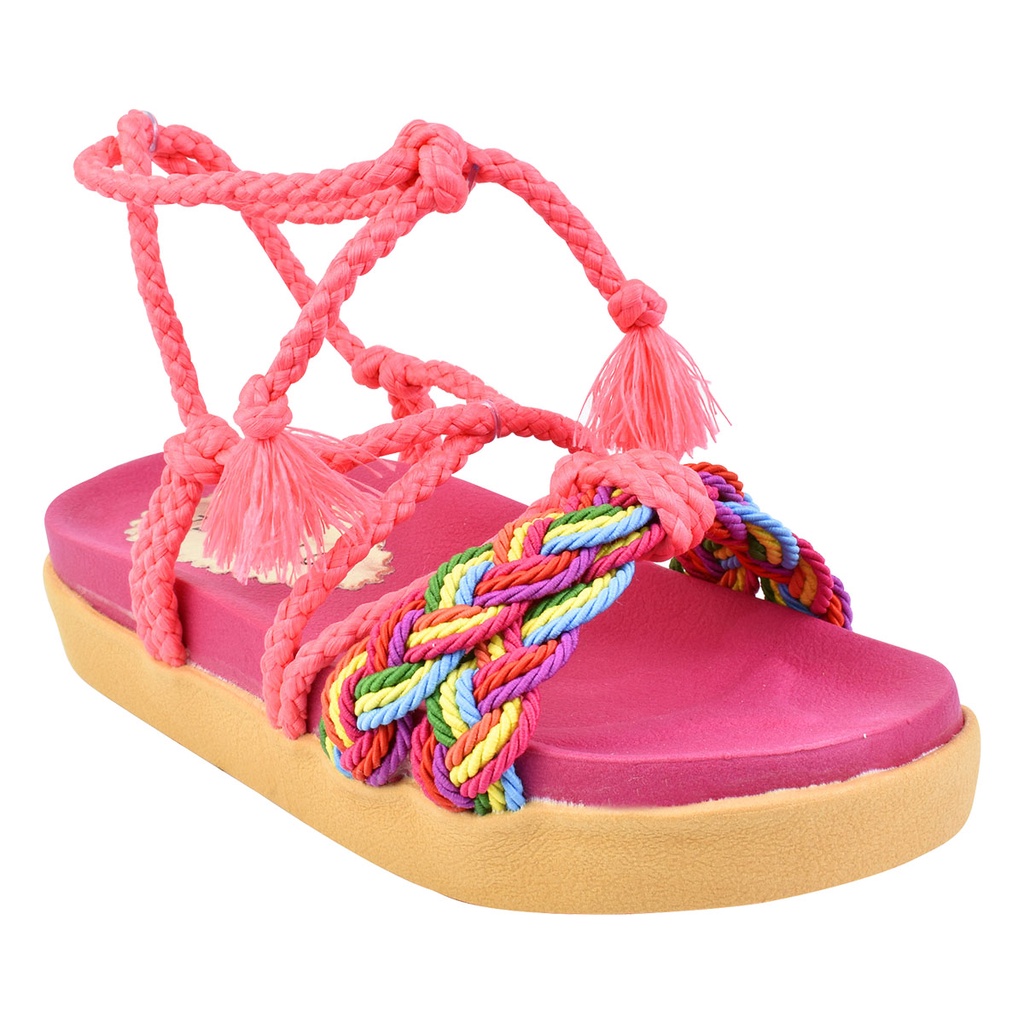 Sandalia Papete Feminina Birken Rasteirinha Plataforma Amarração Verão Colorida Pink