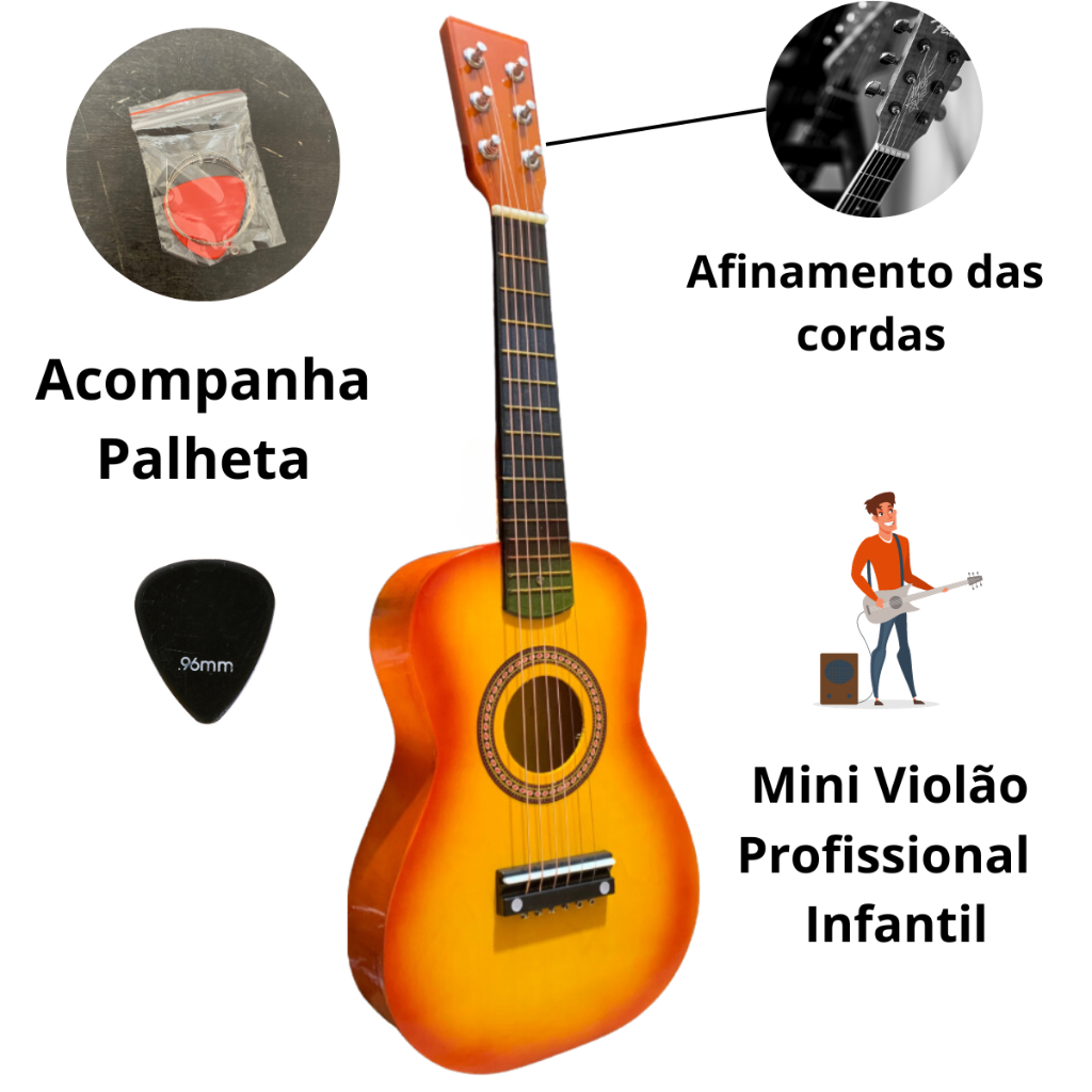 Violão Madeira Infantil Semi Profissional Com Cordas Em Aço Mini Violão Criança Menino Menina Top