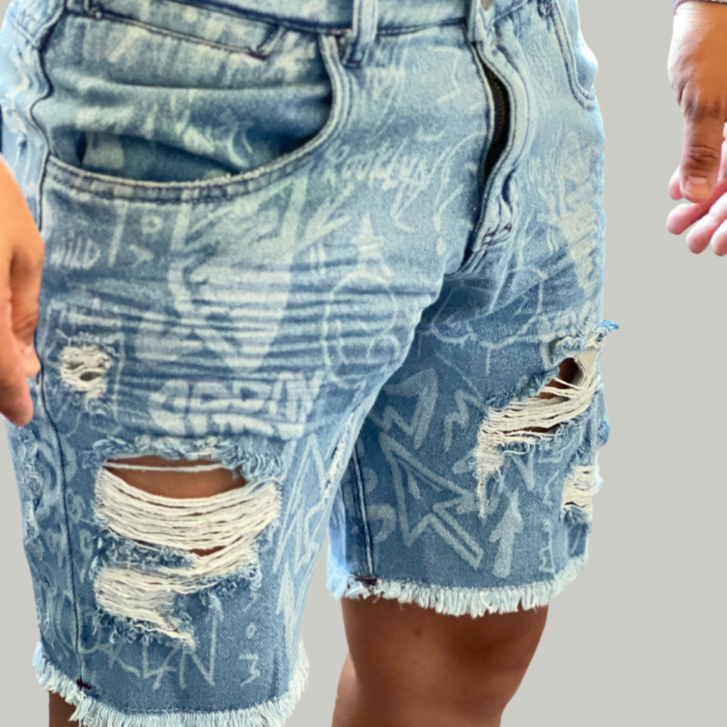 QUEIMA ESTOQUE Bermuda Jeans curta Masculino 100% algodão Destroyed Slim Fit Original Desenhado a laser