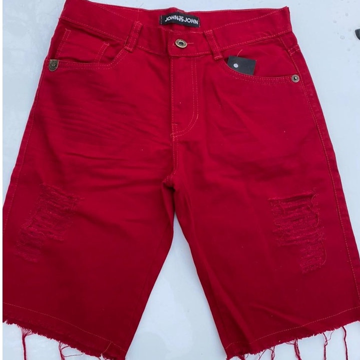 bermuda jeans masculino slim estilosa estilo destroyed cor vermelho lançamento