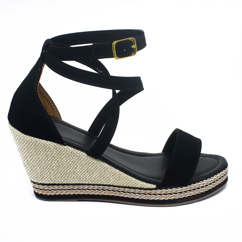 Sandália Feminina Anabela Salto Fivela Casual Figueiroa